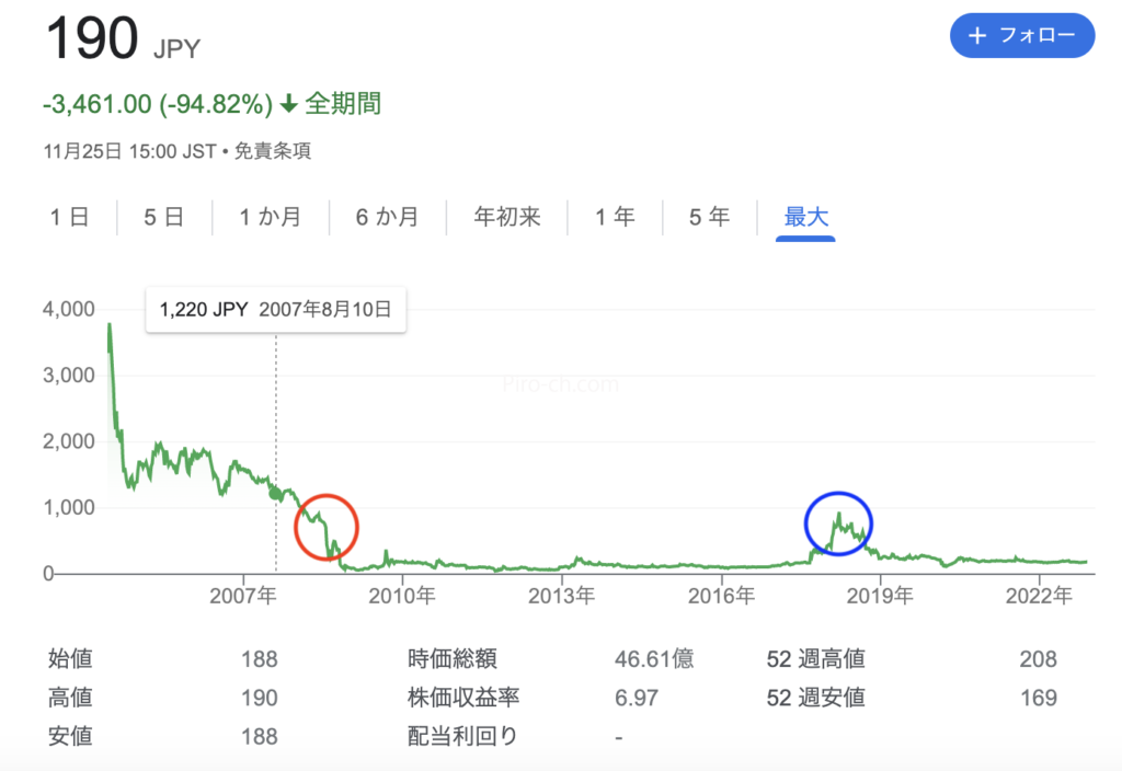 2位は名峰エンタープライズ(8927)で9年9ヶ月。ラッキーなことに売却できました。