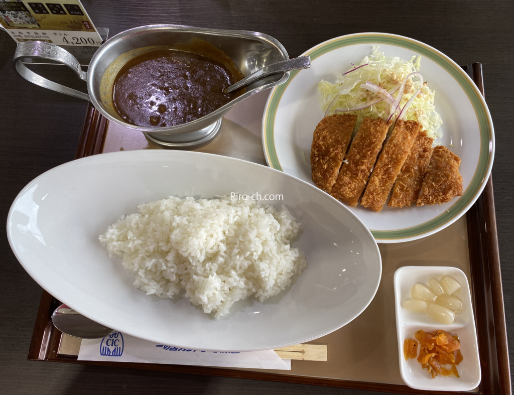 昼食はカツカレー。割増料金なし。