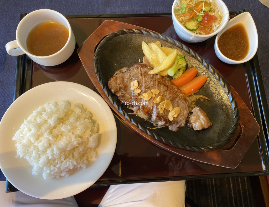 スループレー後に昼食なので、ガッツリステーキを食べた。なかなか美味しかった。